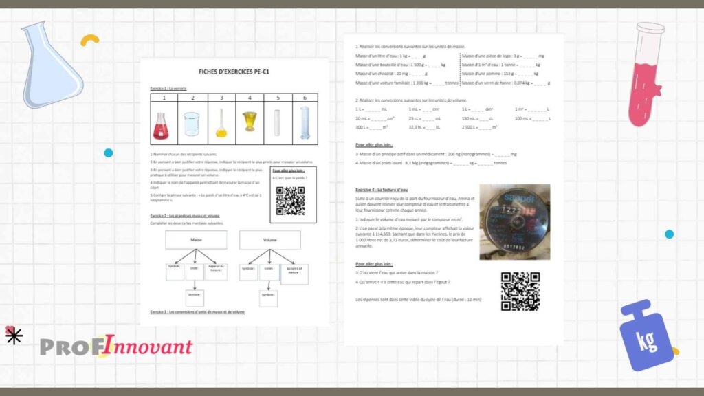 Chaque exercice est conçu pour renforcer la compréhension des élèves, en les aidant à faire le lien entre la théorie et la pratique. En outre, ils apprendront à naviguer entre différentes unités telles que le kilogramme, le mètre cube et le litre, et à appliquer ces mesures dans des contextes réels.